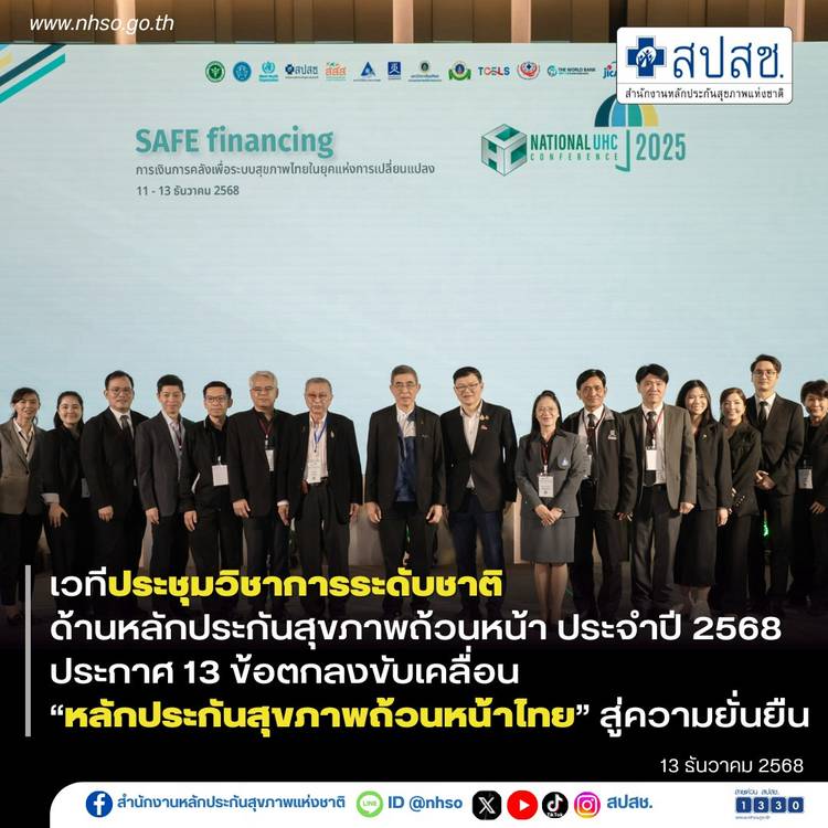องค์การอนามัยโลกยกไทยเป็นต้นแบบปฏิรูประบบการเงินสุขภาพยั่งยืน อ่านต่อได้ที่นี่ https://www.nhso.go.th/th/communicate-th/thnewsforperson/2025-12-11-07-55-48