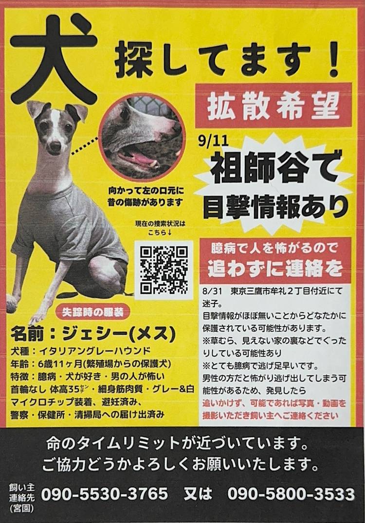 お客様のお散歩仲間さんのわんこさんだそうです。路上で見かけたり、特徴の一致するわんこさんに心当たりのある方が居ましたら画像の連絡先へご連絡をお願いいたします。