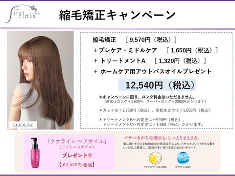 不定休・最終受付カット18時カラー・パーマ17時縮毛16時