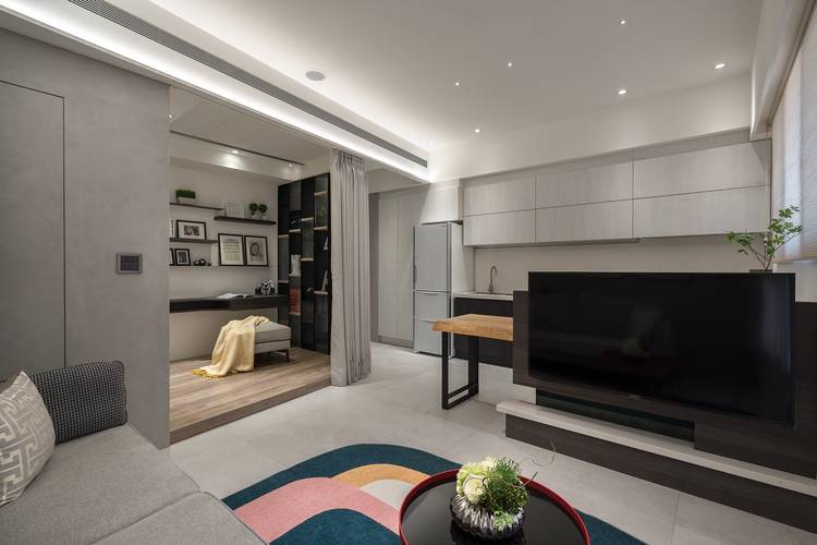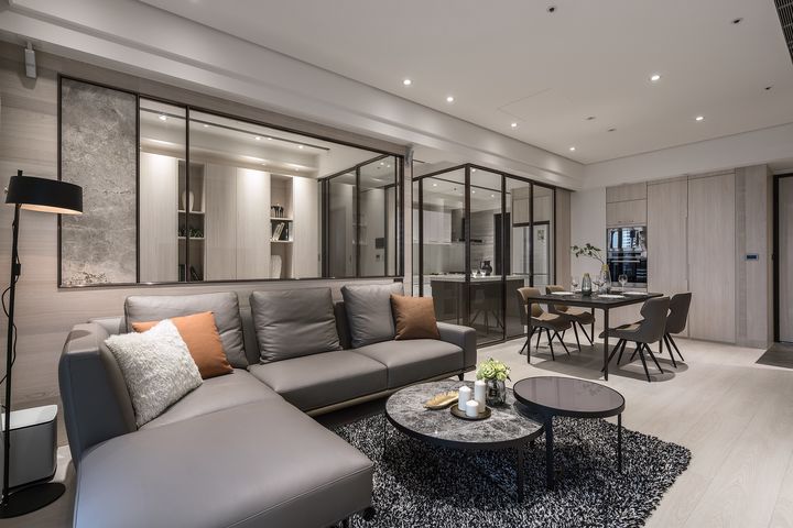 #新北市 #中和區 #老屋翻新 #現代風 #3房2廳2衛 #標準格局 #烤漆鐵件 #灰鏡 #木作貼皮 #義大利磁磚 #大板磚 #系統櫃 #得利乳膠漆 #苡希創意設計有限公司 #葉佳奇設計師