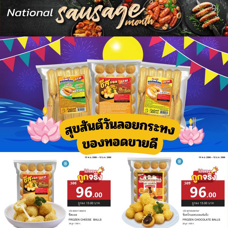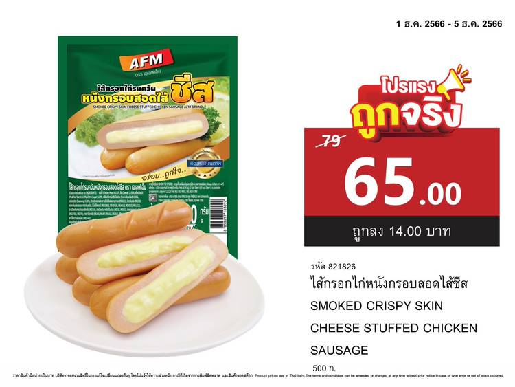เอาแล้ว🥖 โปรพิเศษเพื่อคุณลูกค้าที่น่ารักสุดๆ ⭕ลดจัดหนัก 5 วัน 🔥 AFMกรอกไก่รมควันหนังกรอบชีส🧀 500ก 🔥🔥ลดเหลือแค่ 65บาท🔥🔥 โปรโมชั่นเริ่ม 1 ธ.ค. 2566 - 5 ธ.ค. 2566 นี้นะคะ ใครอยากได้รับไปที่ แม็คโค...