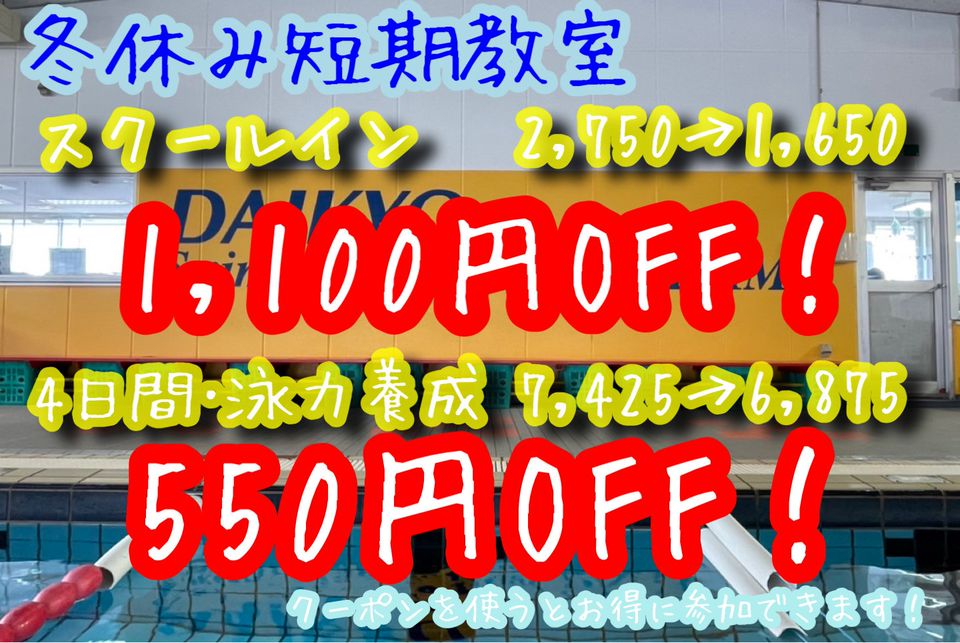 大教スイミングスクール小名浜校です!祝日、月末29日休業