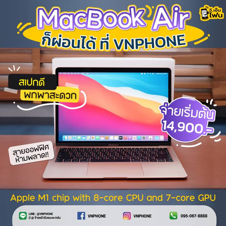 Macbook Air ก็ผ่อนที่Vnphone ได้ . 👉🏻จ่ายแค่ดาวน์รับเครื่องทันที 👉🏻เครื่องใหม่แกะกล่องรับประกันโดยศูนย์ 👉🏻มีให้ผ่อนโทรศัพท์ทุกยี่ห้อ และผ่อนไอแพด 👉🏻มีบริการส่งทั่วประเทศไทยและเก็บเงินปลายท...