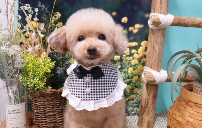 トイプードルちゃんにはカシミアケラチン配合のトリートメントを使用。被毛の修復と肌にうるおいを与え、ふんわりなめらかな仕上がりに🐩