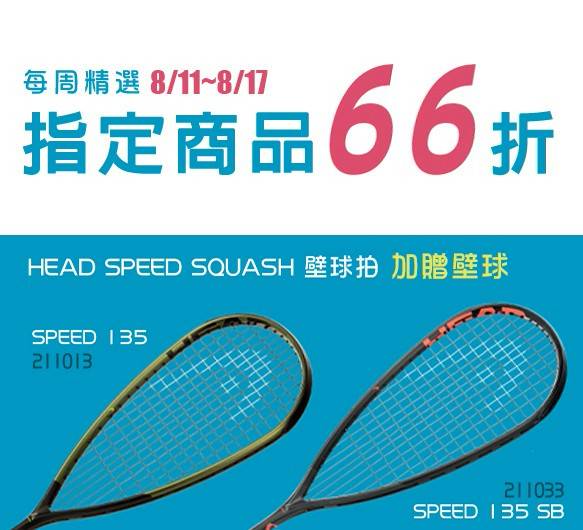 ⏳8/11~8/17本周66折商品 1️⃣Speed 135 壁球拍 2️⃣Speed 135 SB 壁球拍 ⚠️若商品完售則活動停止 不另公告~要買要快喔⚠️ https://shorturl.at/BNmEv
