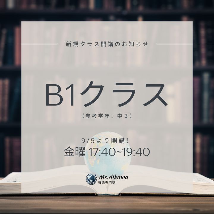 📢【新クラス開講のお知らせ】中高生プログラム《B1クラス》9月5日(金)スタート!金曜 17:40〜19:40(週1/120分)✔ GDMメソッド × 英語4技能+記述力✔ 高校入試・英検にもつながる実践的英語✔ オールイングリッシュで論理的に考える力を育てます