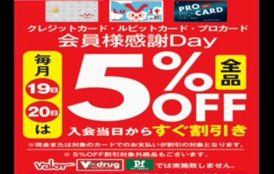 毎月19.20日カード会員様5%OFF感謝デー開催!