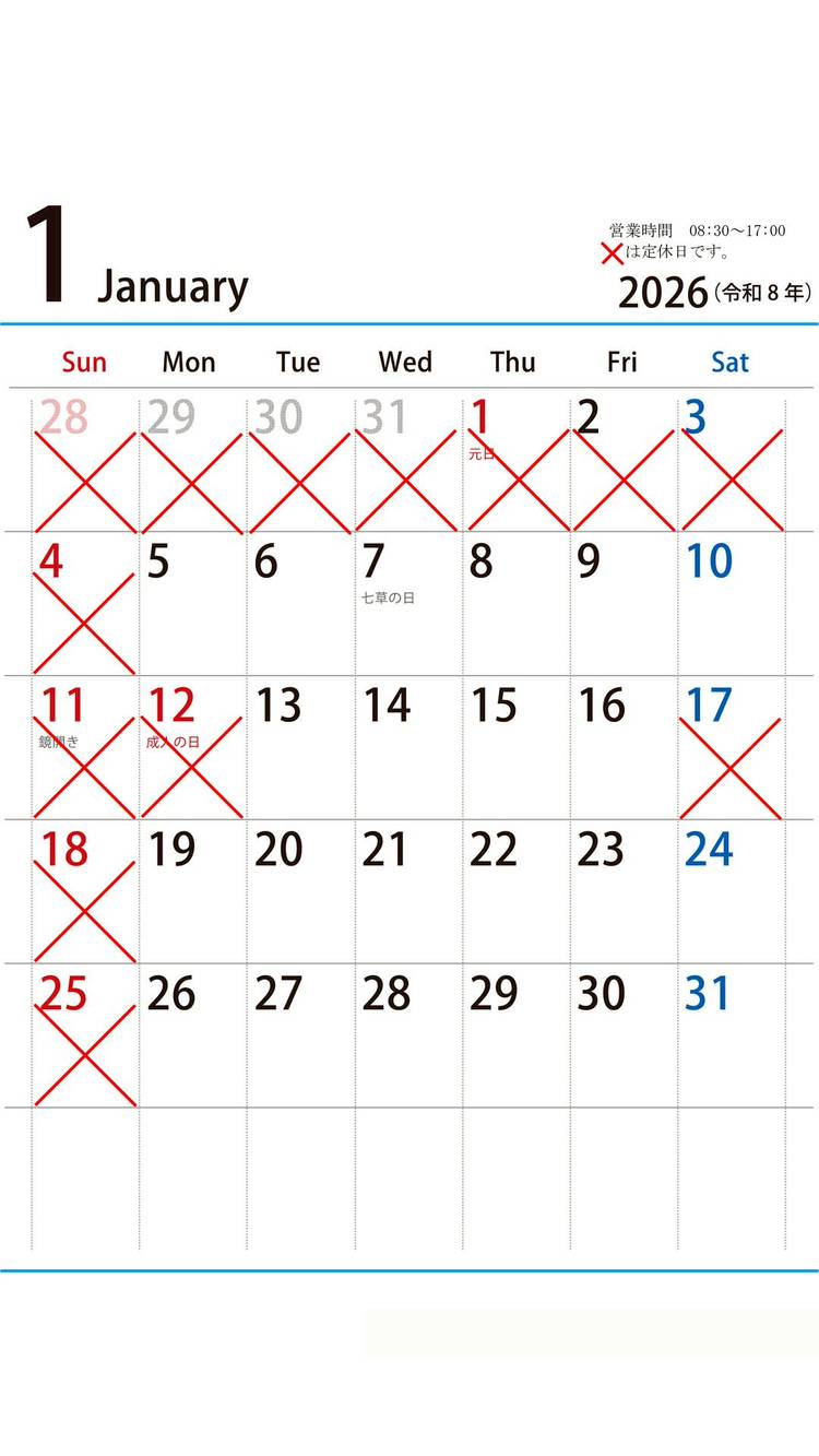 第一、第三土曜日及び祭日はお休みです。
