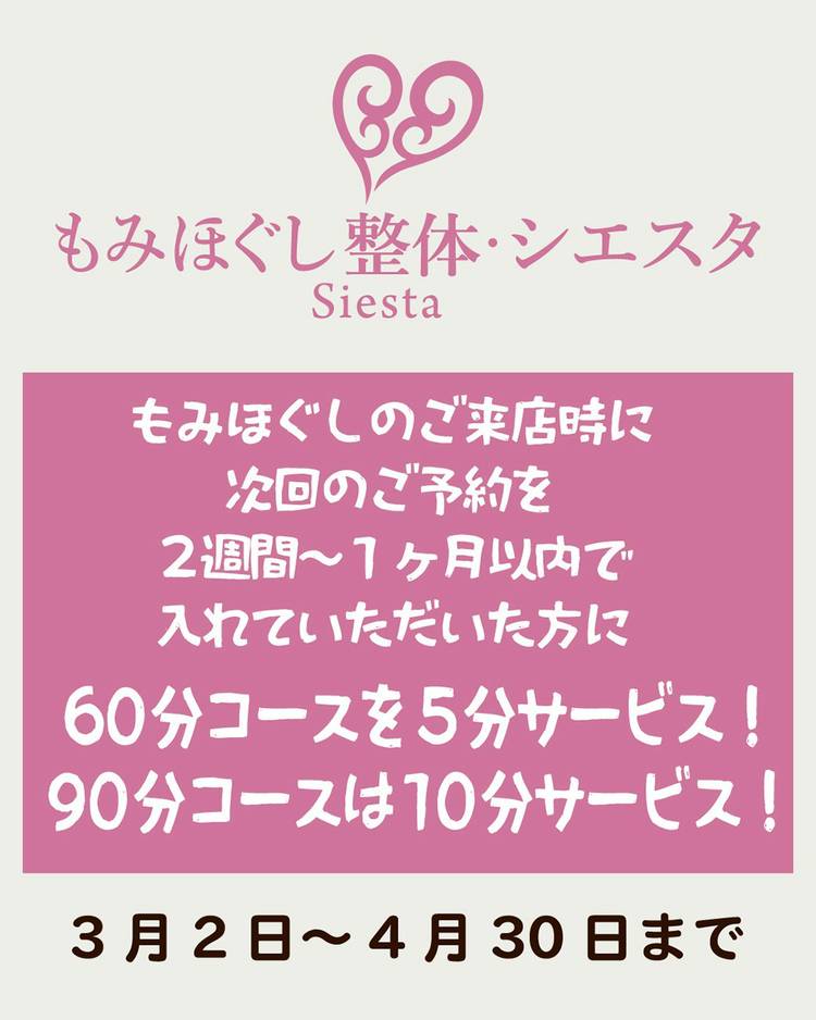もみほぐし整体シエスタの公式LINEです