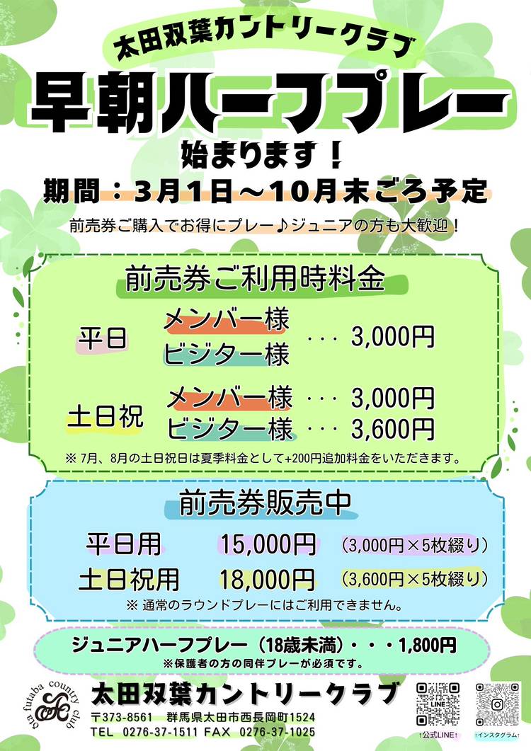 〒373-8561 群馬県 太田市西長岡町 1524番地 太田双葉カントリークラブ