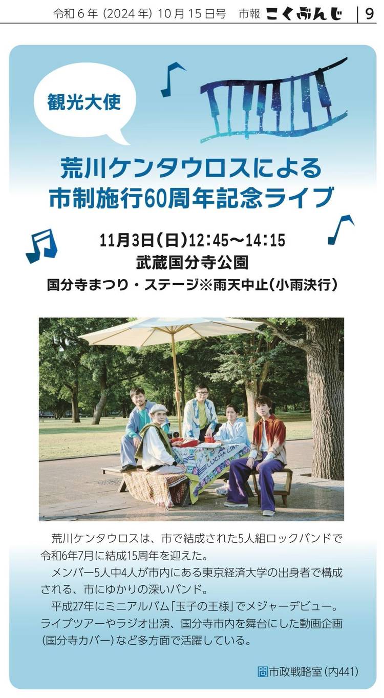 2019年、国分寺市観光大使に任命。