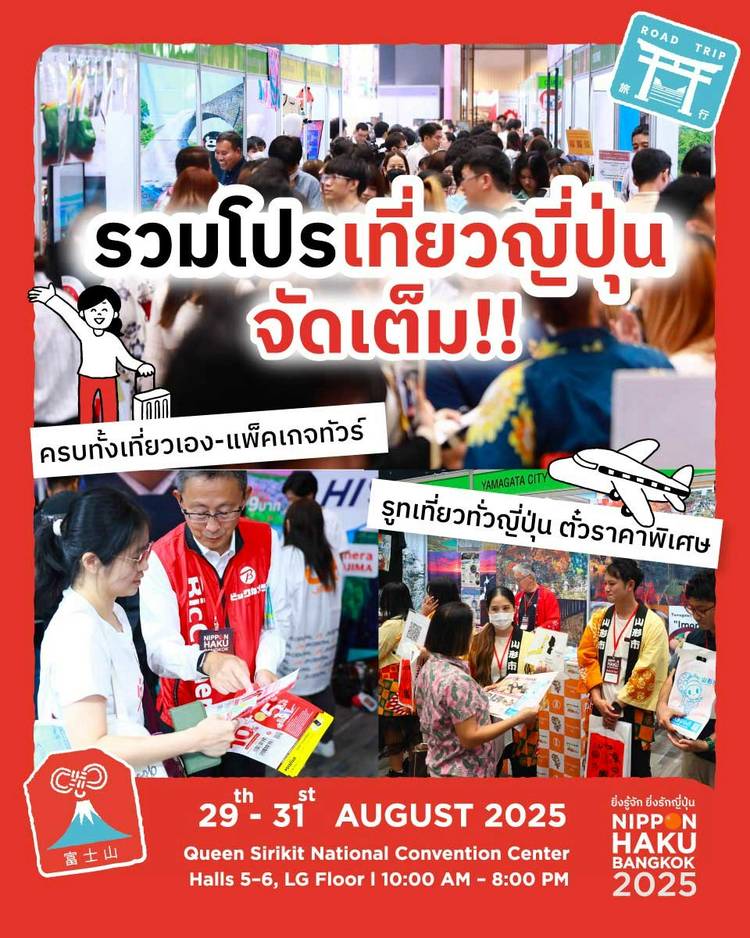 KUMAMON บุกงานนิปปอนฮาคุอีกครั้ง! แฟนๆ คนไหนใครรอเจอ คุมะมง อยู่บ้างน้า~ เตรียมพบกับ 「KUMAMON WORLD TOUR」สุดยิ่งใหญ่ได้ที่งาน NIPPON HAKU BANGKOK 2025 กับความสนุกที่จะมีมาเสิร์ฟให้ 3 วันเต็ม ทั้งบนเ...