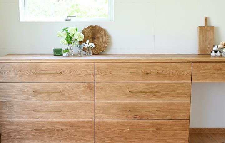 それを元に設計図を作成してお見積もりさせて頂きます。Aはい、もちろん可能です。引き出しの数、扉、棚、色などの仕様をご希望に合わせて変更させて頂きます。