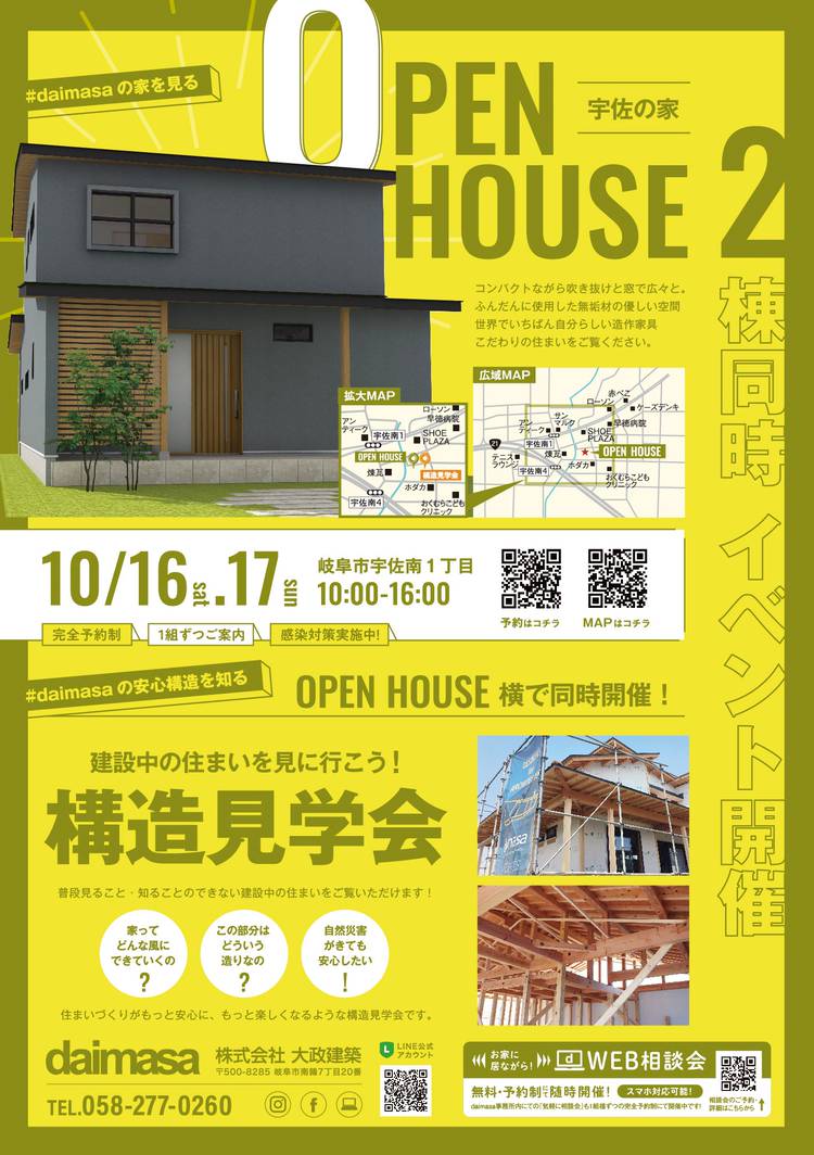 2棟同時 住まいの見学会1日限りの開催です🤭❕▶10/16(日) 9:30~ / 10:00~ / 10:30~ / 11:00~▶予約制・組数限定になります▶ご予約はこちらから ≪ https://daimasa.net/17371 ≫皆様のご来場を、スタッフ一同心よりお待ちしております!🦔大政建築 058-277-0260