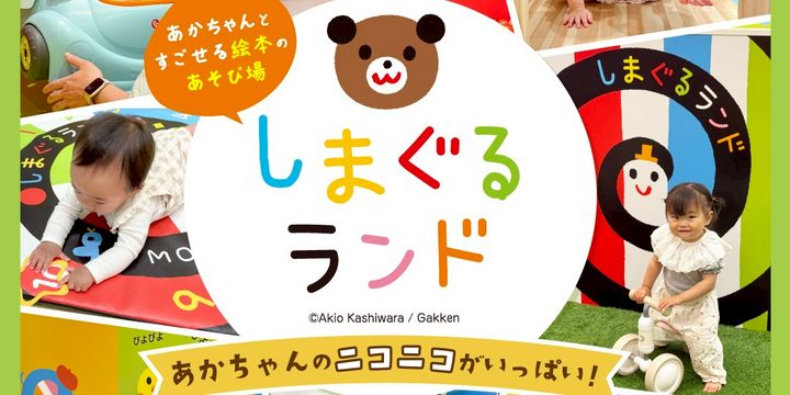 赤ちゃんのニコニコがいっぱい!しまぐるランドは赤ちゃん絵本『しましまぐるぐる』をテーマにした、0歳~2歳の赤ちゃん専用のあそび場です!