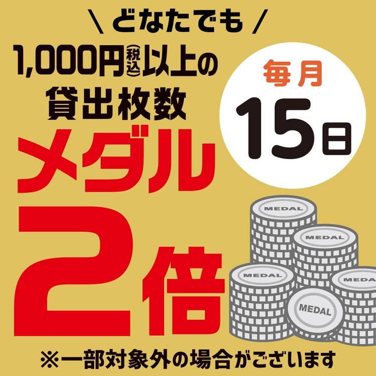 📢メダルの貸出がいつもより超超超おトク✨1万円でメダル1万枚💰 対象店舗:全国のモーリーファンタジー・PALO ※モーリーファンタジーLINKS UMEDA 店・今治新都市店、PALO 諏訪店、PALO小松島店、PALO境港店は対象外です ※ご利用の際はスタッフにお声がけください