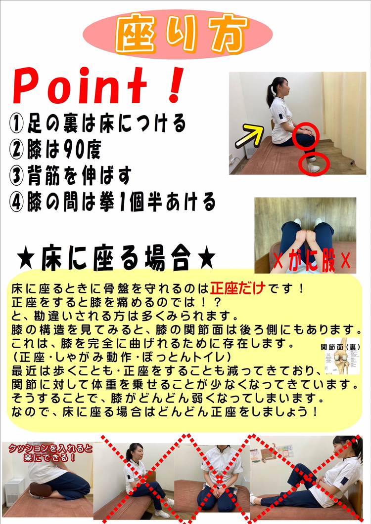 こんにちは!やまもと鍼灸接骨院さかいし院です😄 4月に入り新生活が始まったという方も多いのではないでしょうか? ところで普段、「座り方」は気にしたことはありますか? 実は身体に負担がかかりにくい座り方があるんです😆 ポイントは4つ❗️ 1.足の裏は床につける 2.膝は90度 3.背筋を伸ばす 4.膝の間は拳1個半 この姿勢で座ることで「骨性支持」と呼ばれる骨で身体を支えることが出来る...
