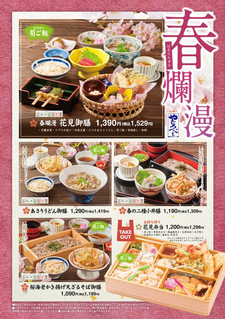 創業明治十年、歌行燈グループの「やじろべえ」です ひとあしお先に2月26日(金)より開始予定の春の新作フェアメニューをご紹介 今回のイチオシは…「花見弁当」お持ち帰り限定ですが、見た目も綺麗でとっても春らしく仕上がりました。ご家庭ではもちろん、お花見のお供にぜひご利用くださいませ。 お電話でのご予約がおまたせしないで便利です
