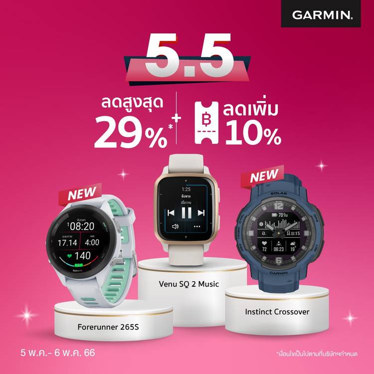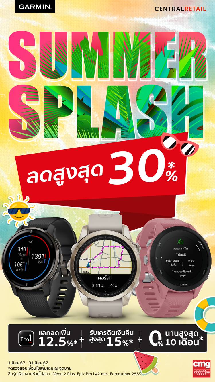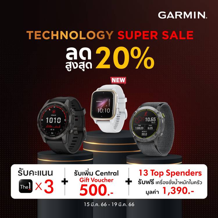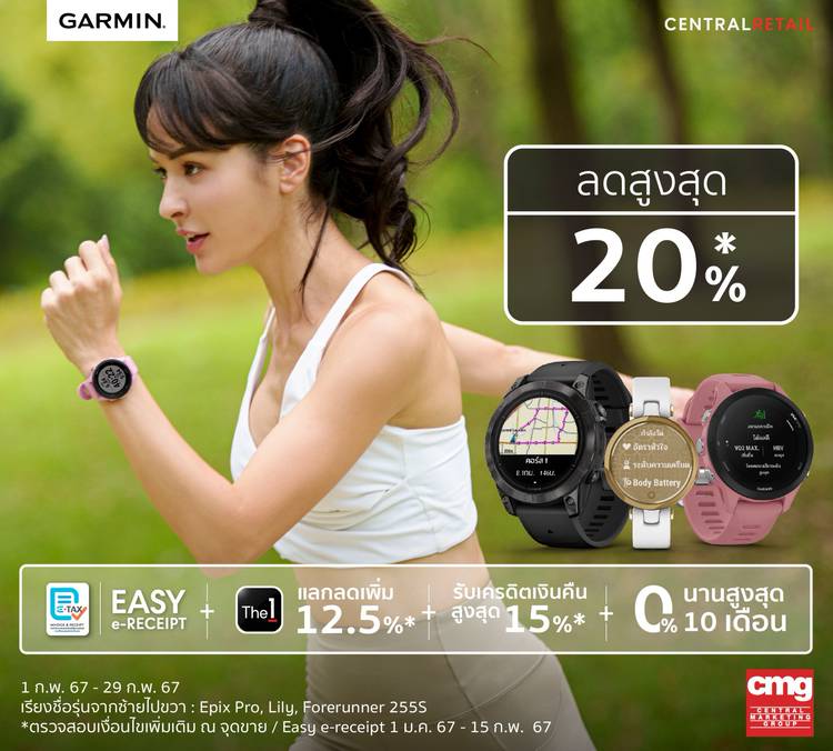 ซื้อ Garmin สุดคุ้ม ต้อนรับปีใหม่ รับส่วนลดสูงสุด 4,000 บาท พร้อมลดหย่อนภาษีสูงสุด 50,000 บาท* (Easy e-Receipt) พิเศษ เฉพาะสมาชิก The1 แลกคะแนนเท่ายอดชอป ลดเพิ่ม 12.5%* หรือ ผ่อน 0% สูงสุด 10 เดือน*...