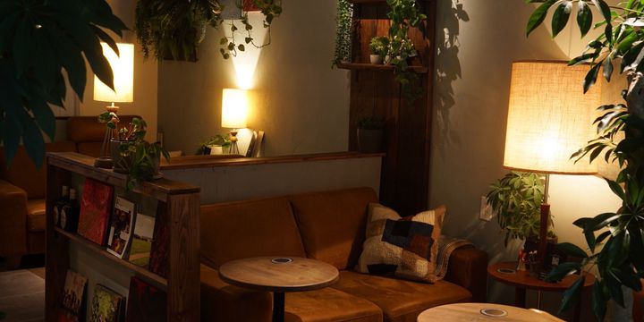 緑とジャズに囲まれるシーシャラウンジ