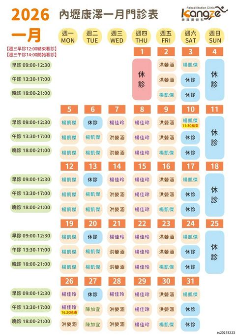 復健治療服務時段:08:00~21:30