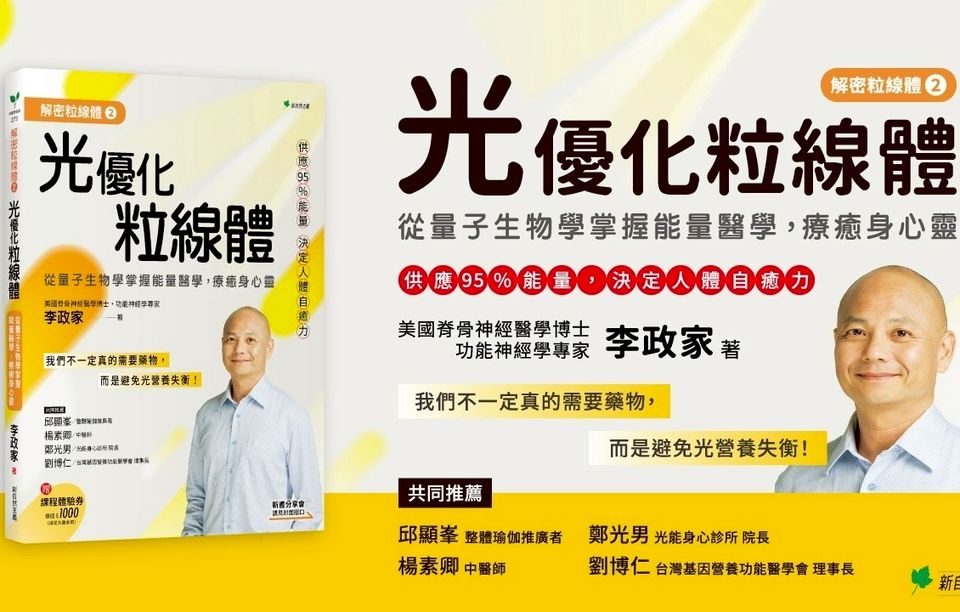 美國脊骨神經醫學博士-李政家 Dr. Li 的新書上架囉✨ 歡迎大家一同參與新書分享講座 (活動全程免費,請預先報名) __________ 《解密粒線體 2 光營養優化粒線體》:從量子生物學掌握能量醫學,療癒身心靈 9/15起網路書店、實體書店陸續上架 買書就送 ⭐️ 價值1000元「課程體驗券」 ⭐️ 春耕國際200元購物金 __________ 【紙本書】 博客來|金石堂|誠品|讀冊...