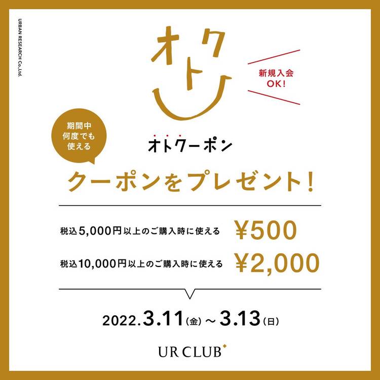 ⭐️オトクーポン開催⭐️ 4/22(金)〜4/24(日) の3日間でオトクーポンを開催致します!! 【キャンペーン詳細】 キャンペーン期間中に何度でもご利用いただけるクーポンをプレゼント🎁 店舗 ・税込¥5,000以上の購入で¥500クーポン ・税込¥8,000以上の購入で¥1,000クーポン ・税込¥15,000以上の購入で¥2,500クーポン 【キャンペーン対象者】 4/21(木)ま...