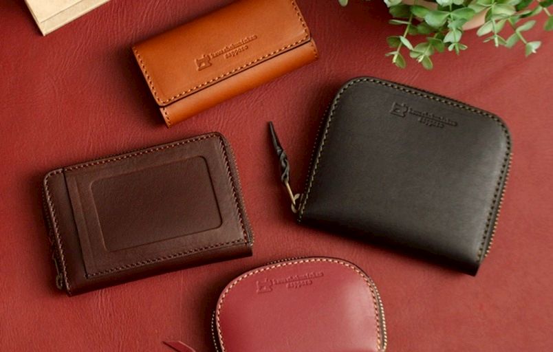 クラフト感漂う温かみのあるミニ財布。箔貼り加工レザー使用。