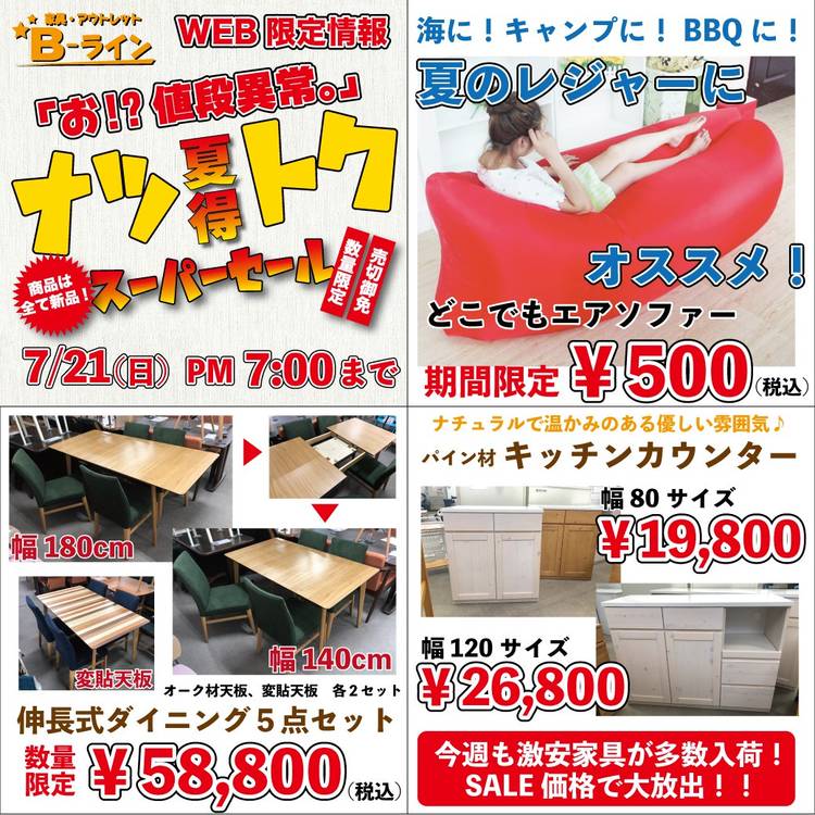 毎度ありがとうございます 今週も激安家具が続々入荷しました! http://kagu-bline.com/x/ryjvac 他にも激安家具を多数ご用意しております ぜひご来店くださいませ!! 「PayPay」使えます! 8月より携帯決済サービス「ペイペイ」での お支払いが可能になりました! ぜひご利用ください! 納品事例カタログ http...