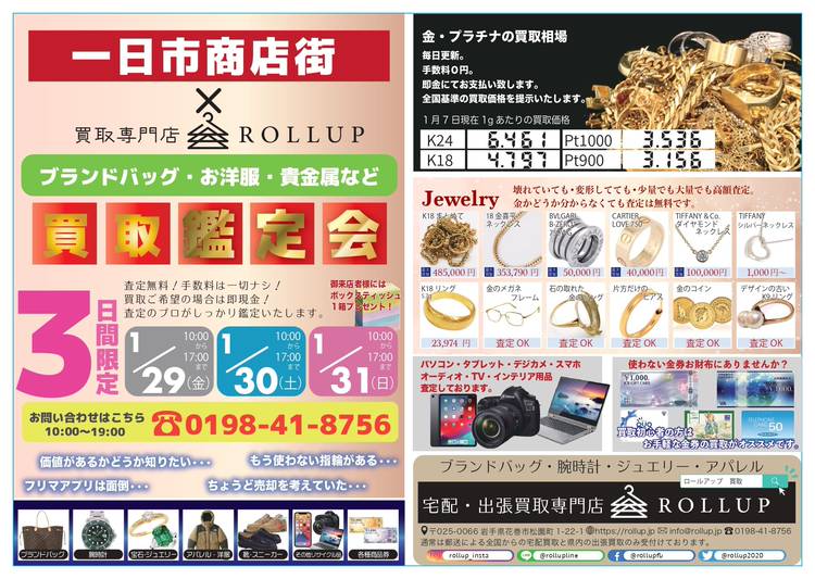 本日から3日間、花巻市一日市商店街にて出張買取鑑定会を開催しております。その間松園町の店舗はお休みさせて頂いております。買取のお客様はぜひ一日市商店街へご来場下さいませ!