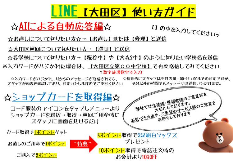 大田区中学校の学生服を取り扱うコード服装です
