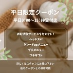 ◆ヘアセット ¥4,400 結婚式や発表会等/ 時間外対応可能 ◆着付ヘアセット ¥9,900~ 着付とヘアセットがセットになったメニュー ナチュラルメイク +¥2,200 *車椅子着付けも可能です(金額は同じ) ◆WIG販売 (プリシラ商品限定) ¥2,200~ エクステ、 ファッションWIGから医療用WIGまで 医療用WIGご希望の方は無料相談受付中 ◆訪問カット ¥4,400~ お店に通う事ができない場合はご訪問致します。 訪問先により移動費がかかります。 ◆脱毛 ¥1,100~ 1回20shot毎/ うなじ、 もみあげ、 髭、 指、 腕など ※追加料金について ◆9時前/早朝料金30分毎:¥700 ◆時間外18時以降料金:¥700