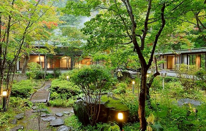 山々に囲まれた静かな温泉ホテル。
