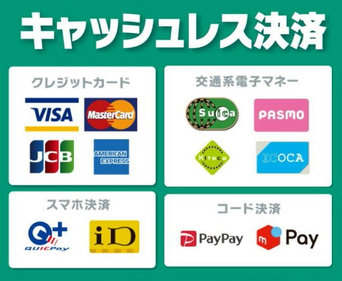 当社では、クレジットカードを始め、スマホ決済、交通系電子マネー、コード決済などご利用頂けます。