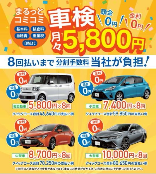 車検や点検などのお支払いにご利用下さい。
