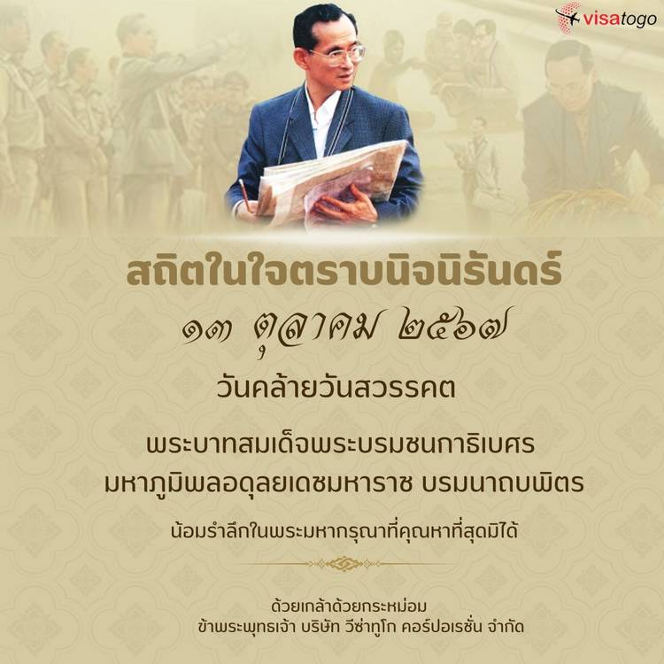 สถิตในใจตราบนิจนิรันดร์ 13 ตุลาคม วันคล้ายวันสวรรคต พระบาทสมเด็จพระบรมชนกาธิเบศร มหาภูมิพลอดุลยเดชมหาราช บรมนาถบพิตร น้อมรำลึกในพระมหากรุณาธิคุณอันหาที่สุดมิได้ ด้วยเกล้าด้วยกระหม่อม ข้าพระพุทธเจ้...