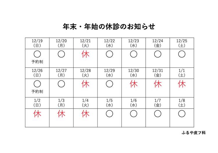 休診 火曜日・祝日|日曜日は完全予約制