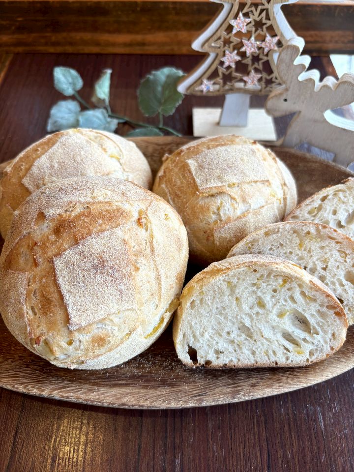 渋皮付きの栗を生地に練り込んで噛むほどに栗を感じるパンに仕上がりました。毎年人気のハードパンです!