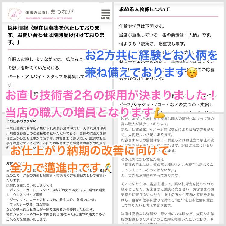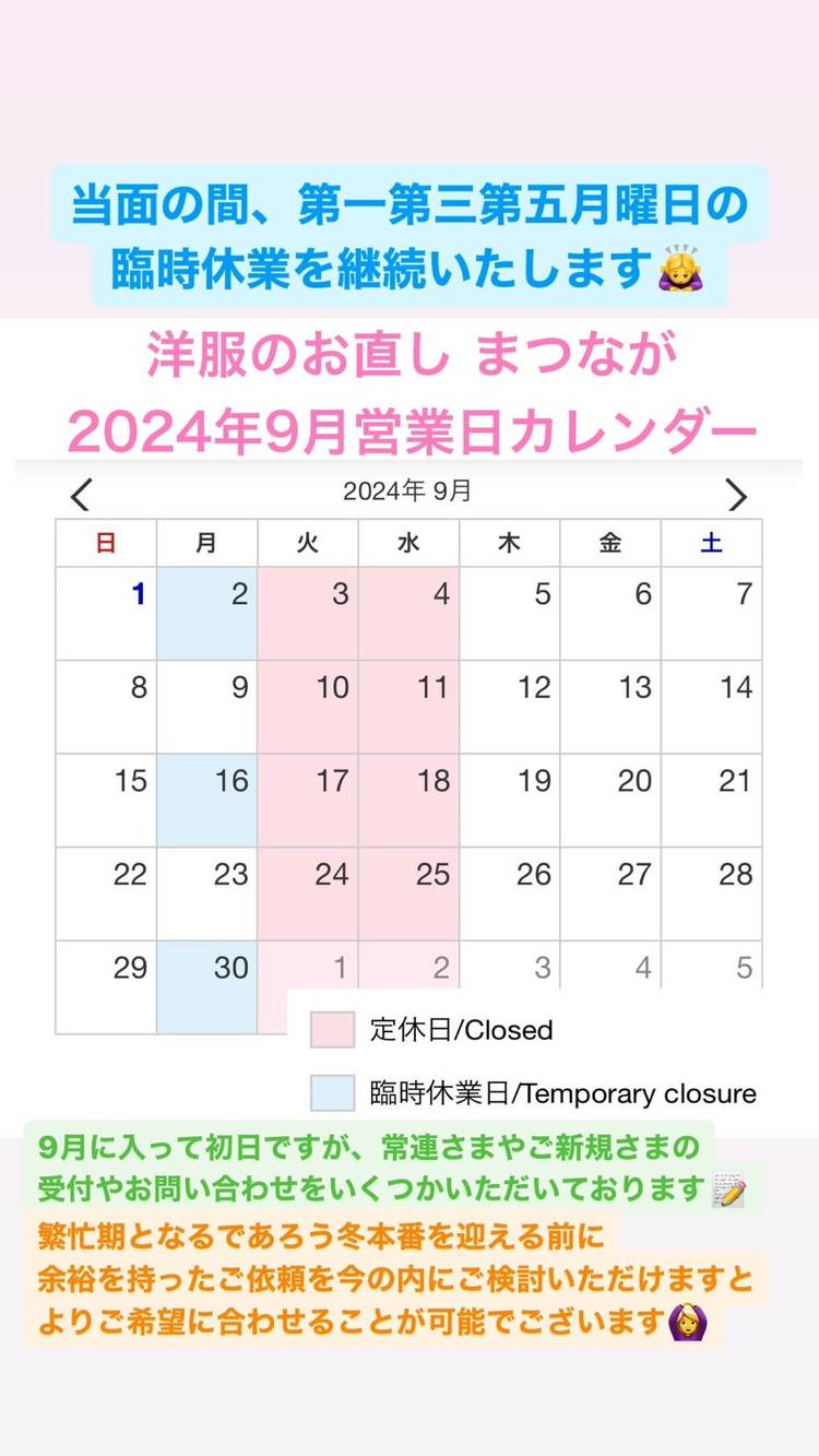 25年5月中は、ご新規さまの受付をご予約制とさせていただきます。 ご依頼殺到に伴う作業集中時間の確保のためとして、ご理解とご協力をいただけますよう伏してお願い申し上げます。 ※既に当店をご利用いただいているお客さまはご予約不要で受付を承ります。お気軽にお越しくださいませ。 During May 2025, we will be accepting new customers by appoint...