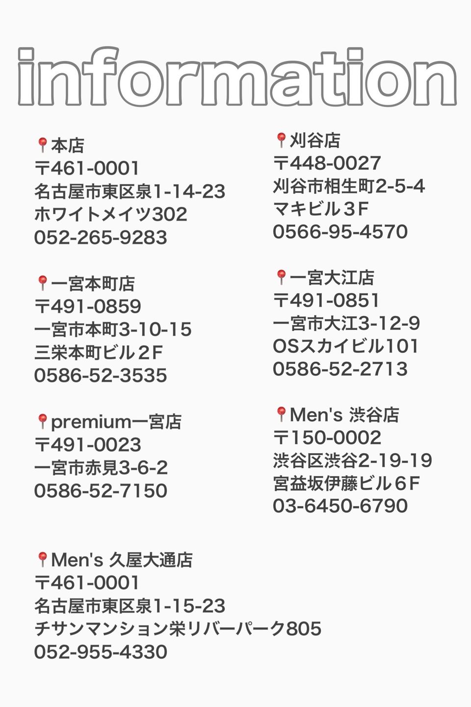 〒461-0001 愛知県 名古屋市東区 泉1-14-23 ホワイトメイツ302