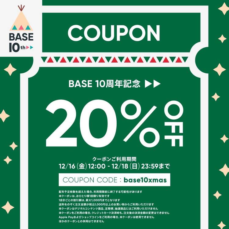 本日16(金)12時〜18(日)24時まで! クーポン配布‼️🎫 お得な20%OFFです‼️ (最大1,000円OFF) 商品購入画面にてクーポンコード ≪base10xmas≫を入力してご使用ください🎄 ⬇️使用可能アイテム⬇️ 🟠カーフソックス加工 🔵オリジナルシンガード作成 🟢オリジナルビブス作成 ⬇️オンラインストア⬇️ bit.ly/3V0QjAL