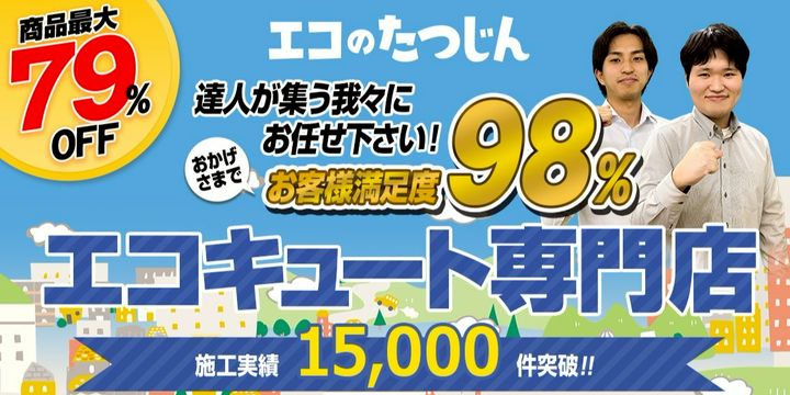エコキュート専門店の「エコのたつじん」ならスピード対応・充実のアフターフォロー!皆様に選ばれて施工実績15,000件突破!
