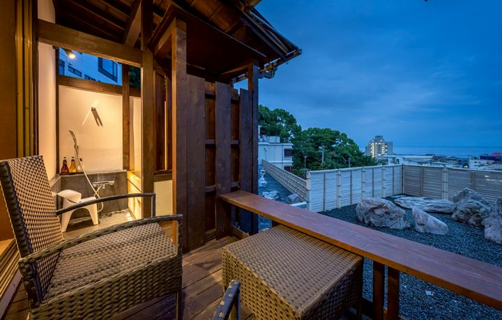 自家源泉の露天風呂付客室から眺める伊東市の眺望は抜群!!