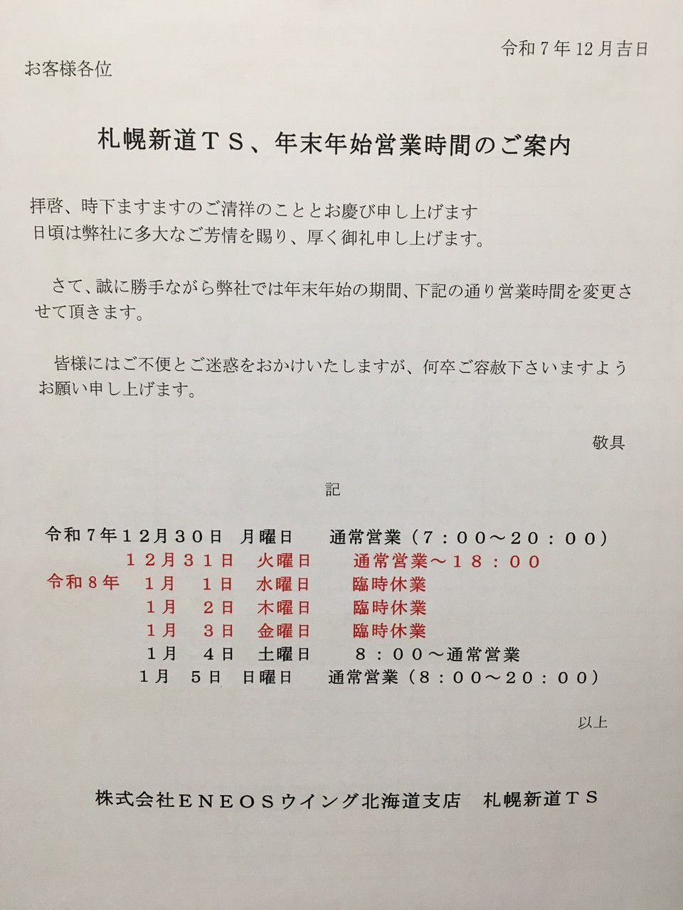 ENEOSウイング 札幌新道TS