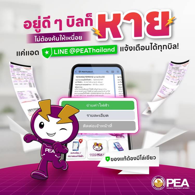 PEA e-Bill 🧾 รับใบแจ้งค่าไฟฟ้า ใบเสร็จรับเงิน/ใบกำกับภาษีในรูปแบบอิเล็กทรอนิกส์ทาง e-Mail ลดการใช้กระดาษ แถมได้ WATT-D Point แบบเต็ม ๆ สมัคร PEA e-Bill ได้ง่าย ๆ ผ่าน 2 ช่องทาง คือ แอปพลิเคชัน PEA S...