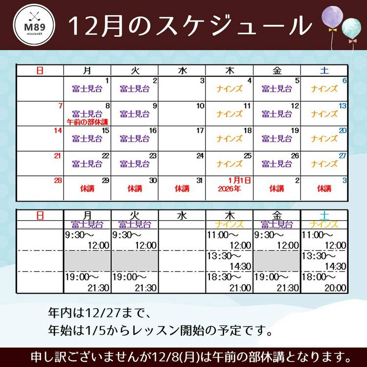 11月からM89ゴルフスクールへ