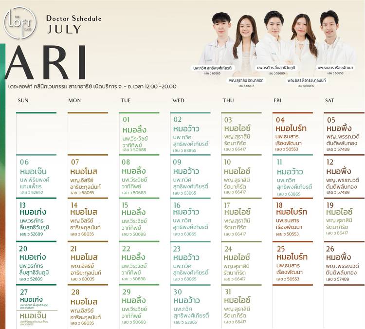 🗓️ ตารางแพทย์ เดือนธันวาคม 2568 𝗧𝗵𝗲 𝗟𝗼𝗳𝘁 𝗖𝗹𝗶𝗻𝗶𝗰 ทั้ง 6 สาขาค่ะ 💚 เราคัดสรรเทคโนโลยีที่ทันสมัย เพื่อให้การรักษามีประสิทธิภาพ และมอบผลลัพธ์ที่ดีที่สุด 💚 เดินทางสะดวกสบาย ทุกสาขา ใกล...