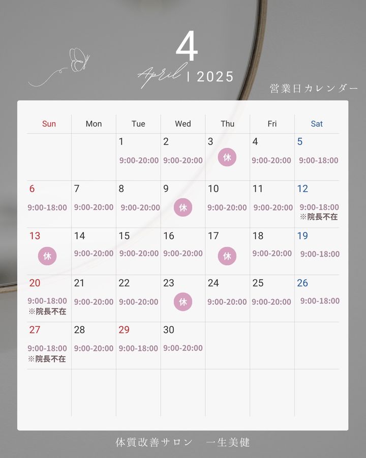 4月営業日カレンダー🌸