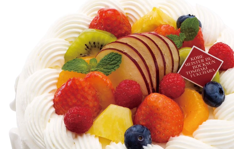 神戸マイスター福原敏晃オリジナルデコレーションです。 (上から、生クリーム・スポンジ・スライス苺と生クリーム・スポンジ・スライス苺と生クリーム・スポンジ)