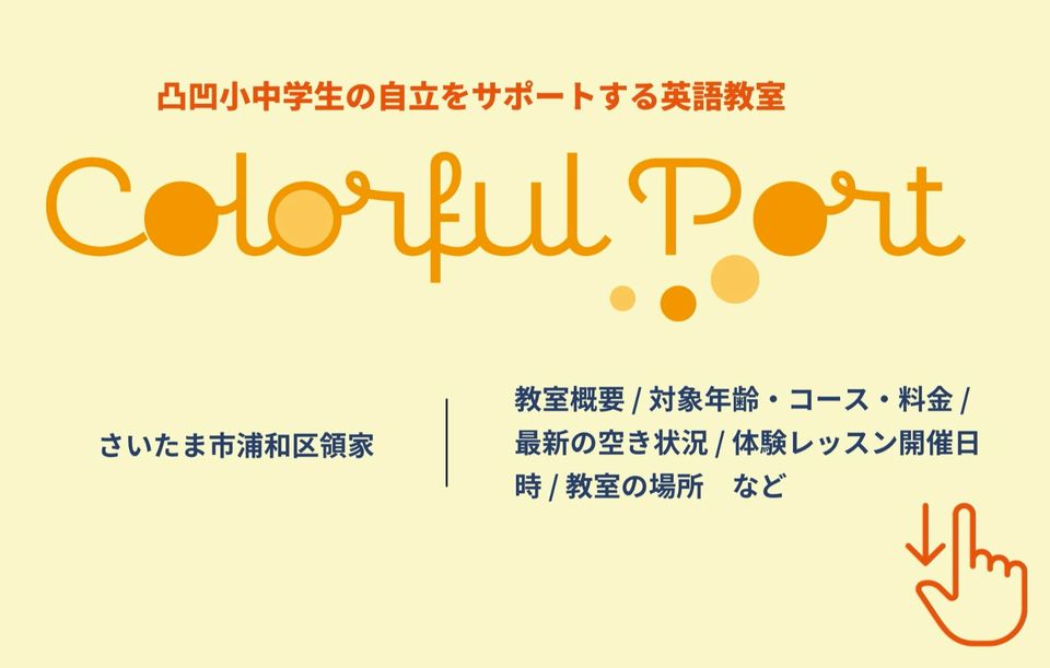 Colorful Port(カラフルポート)という名前は、様々な色を持った子がこの教室でまた鮮やかな色に変わり未来へ自信をもってはばたいていってほしいという想いがこめられています。